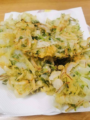 今夜のおかずは、新玉ねぎのかき揚げと、ポテトサラダを、じいさんが作りました。